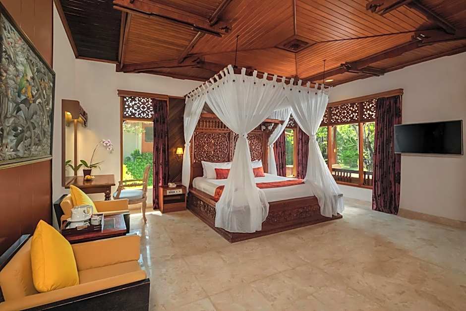 Offering bigger space, the room features traditional Balinese decor. The private bathroom comes with a separate bath and shower.
